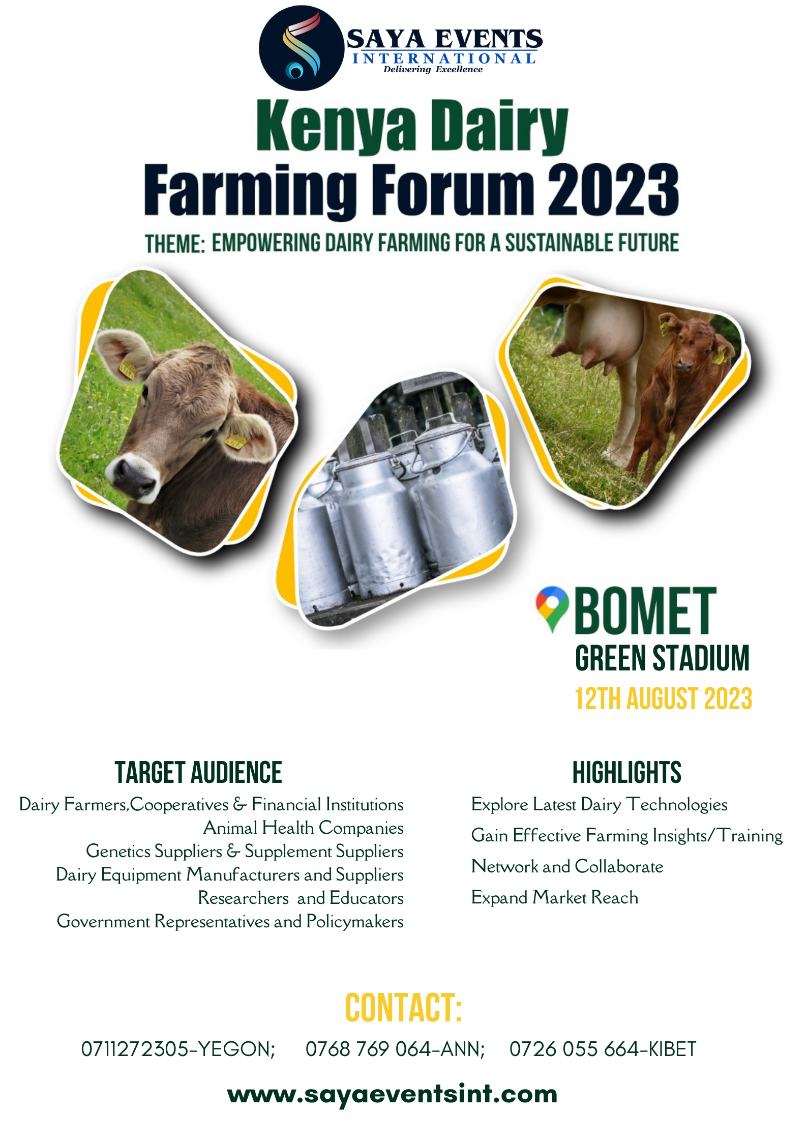 Bomet 245 - Nairobi, Nairobi, Nairobi County, KenyaThe Kenya Dairy Farming Forum 2023 is a highly anticipated event organized by Saya Events International. It will be held on August 12th, 2023, at Green Stadium in Bomet County, Kenya. The forum aims to bring together stakeholders in the dairy sector, including dairy farmers, pharmaceutical companies, feed suppliers, animal health, genetics supply, supplement supply, dairy equipment manufacturing and supply, […]